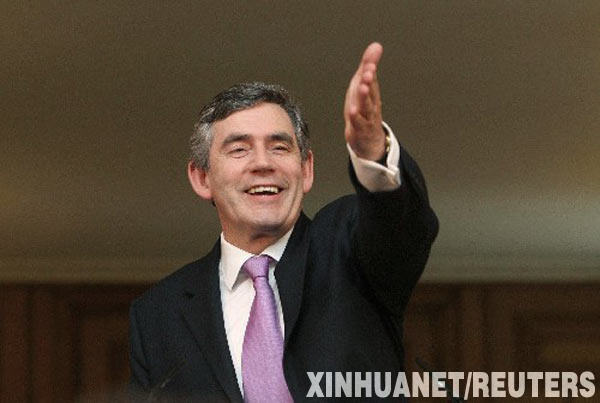 資料圖片:7月23日,英國新任首相布朗在倫敦的唐寧街舉行他出任首相后的第一次記者招待會。新華社/路透