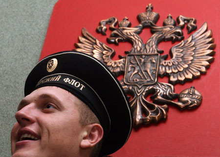 2007年12月2日,一名俄黑海艦隊水兵在基地整裝待發。法新社
