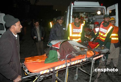 12月27日,臨近首都伊斯蘭堡,在巴基斯坦東北部城市拉瓦爾品第,發(fā)生自殺性爆炸襲擊,前總理貝·布托不幸罹難。圖為爆炸現(xiàn)場有關(guān)人員正在實施搶救。