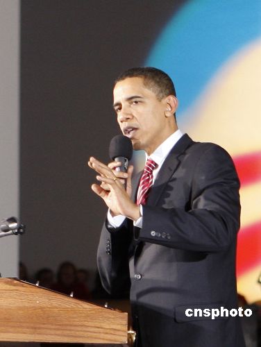美國民主黨總統大選參選人奧巴馬 中新社發 李靜 攝