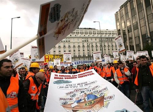 2月13日,希臘爆發全國大罷工,全國交通運輸和公共服務陷于全面癱瘓。