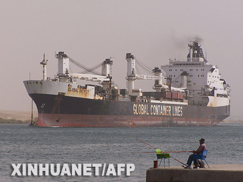 埃及安全部門稱,“全球愛國者”號24日從紅海駛來,進入蘇伊士運河,一些當地商販駕駛民用小船試圖向其兜售商品時,該船人員向小船開火,造成1人死亡、2人受傷。 新華社/法新