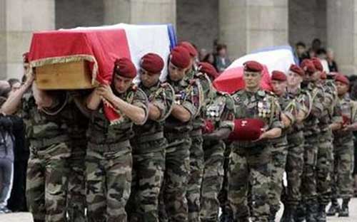 法國總統薩科齊、總理菲永和政府內閣部長以及部分議會議員出席了儀式。國葬儀式后,參加儀式的人員在榮軍院的圣路易教堂舉行了宗教追悼儀式,薩科齊在儀式上致悼詞,贊揚了10名陣亡法國戰士的功績。