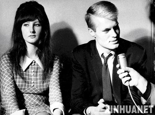 這是克萊齊奧(右)和他的妻子在法國(guó)巴黎接受采訪的資料照片(1963年11月19日攝)。 新華社/美聯(lián) |