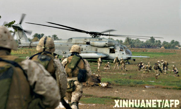 敘利亞官方媒體26日報道,數架美軍直升機當天日落前侵入敘方領空,襲擊位于敘伊邊境8公里處的一個農場,并向正在修建的一座民用建筑內的工人射擊,造成8人喪生,1人受傷。敘利亞外交部當晚緊急召見美國駐敘大使館臨時代辦,強烈譴責和抗議駐伊拉克美軍直升機當天越境射殺敘平民的侵略行徑。這是美國軍方2004年11月23日發布的美軍士兵在敘伊邊境附近執行任務后乘坐直升機離開的資料照片。 新華社/法新