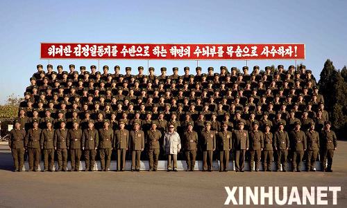 朝鮮媒體5日報(bào)道說,朝鮮最高領(lǐng)導(dǎo)人金正日視察了人民軍的兩支部隊(duì),并觀看了軍事訓(xùn)練表演。報(bào)道說,金正日視察了人民軍534部隊(duì)的訓(xùn)練場,在視察人民軍2200部隊(duì)時(shí),他登上觀禮臺觀看了戰(zhàn)士的軍事訓(xùn)練。金正日強(qiáng)調(diào)人民軍部隊(duì)要十分重視對戰(zhàn)士的軍事和政治培訓(xùn)。視察結(jié)束后,金正日與兩支部隊(duì)的官兵合影。這是金正日與人民軍534部隊(duì)官兵合影(拍攝日期不詳)。新華社/朝中社