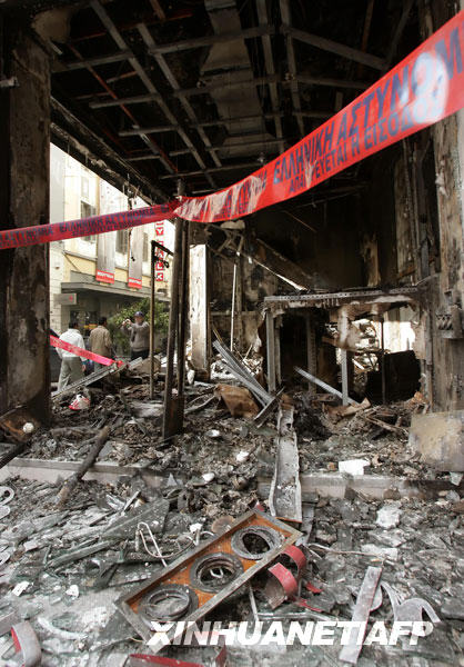 12月7日,在希臘首都雅典,一個(gè)商店在騷亂中被完全毀壞。新華社/法新