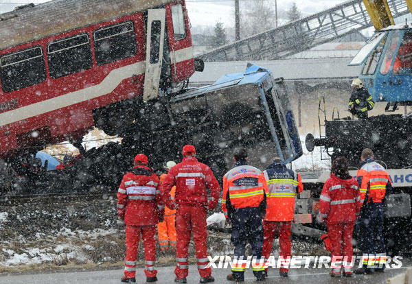 當?shù)貢r間21日上午,一列火車與一輛公共汽車在鐵路與公路的道口相撞,道口沒有設置防護設施。有報道說,當時公共汽車司機欲搶在火車前通過。而火車時速達每小時70公里,火車司機雖然拉緊急制動閘,但為時已晚。公共汽車上的乘客正前往一個滑雪場準備滑雪。
