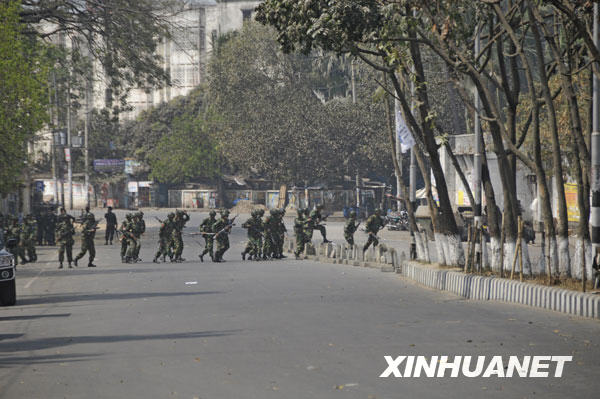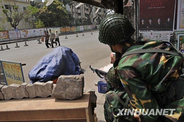 2月25日,孟加拉國軍人在首都達卡警戒。新華社發(fā)(扎曼攝)