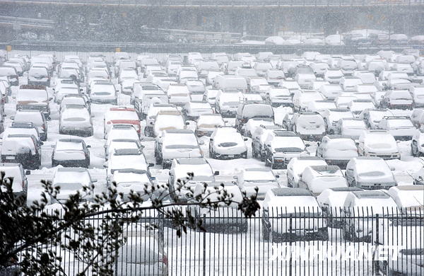 3月2日,在紐約拉瓜地機場,眾多車輛滯留在停車場上。新華社記者谷欣容攝
