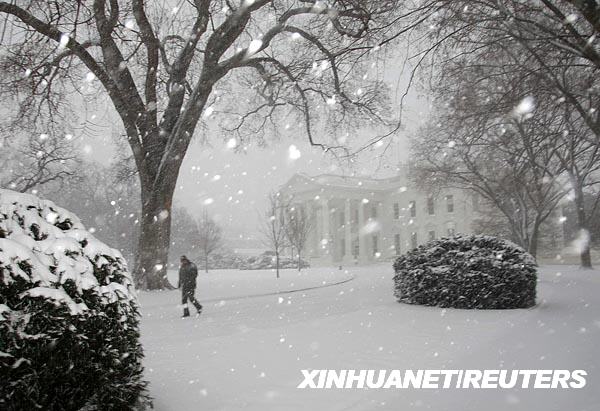3月2日,大雪將美國白宮的南草坪覆蓋。新華社/路透