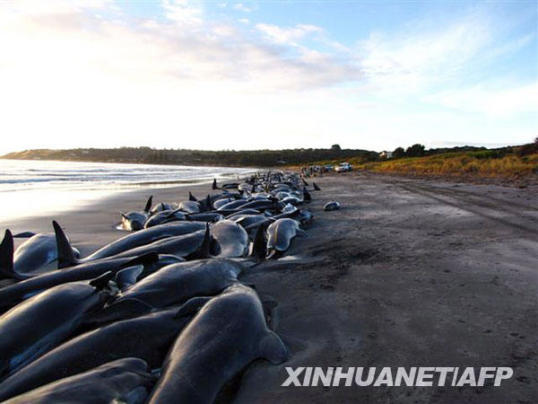 194頭巨頭鯨和7只海豚從3月1日晚開始在澳大利亞大陸和塔斯馬尼亞島之間的金島沙灘上擱淺,目前約140頭鯨魚已經死亡。澳大利亞有關方面正在想方設法救助仍然活著的約50頭鯨魚。新華社/法新