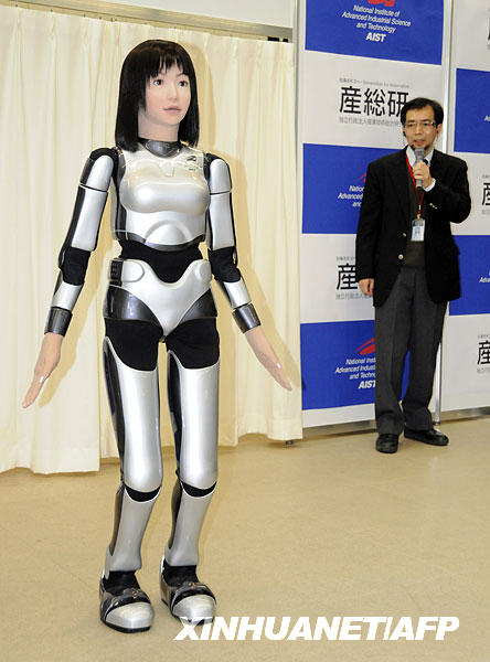 日本產業技術綜合研究所研究人員當天在茨城縣筑波市向媒體展示這一代號HRP—4C、留著齊肩黑發的類人機器人。日本共同社報道,它“身高”1.58米,“體重”含電池43公斤,女性臉龐,大眼睛,鼻子小巧,充電一次可行動約20分鐘。