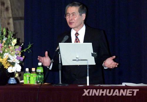 4月7日,秘魯最高法院特別法庭以參與兩起綁架殺人案、犯有“踐踏人權罪”判處秘魯前總統藤森25年監禁。這是2002年1月10日,藤森在日本東京拓殖大學演講的資料照片。新華社記者馮武勇攝