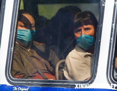 4月27日,在墨西哥首都墨西哥城,兩名戴著口罩的市民向車窗外張望。墨西哥衛生部長科爾多瓦當日在新聞發布會上宣布,墨西哥政府決定從27日開始將停課范圍從原來的疫區擴大至全國,停課包括大中小學及幼兒園等教學場所,嚴防豬流感疫情蔓延。 新華社/法新