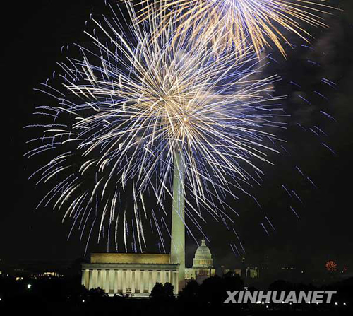 7月4日,美國人以各種方式慶祝一年一度的獨立日。按慣例,首都華盛頓舉行了重溫獨立宣言、國慶大游行、廣場音樂會以及焰火表演等精彩紛呈的慶祝活動。總統奧巴馬借此機會,號召美國民眾繼承前輩的愛國精神,并支持政府的一系列改革政策。