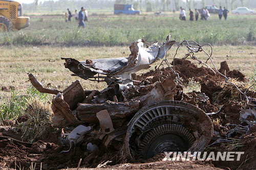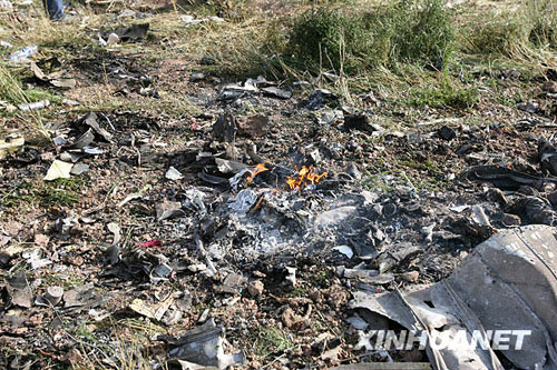 7月15日在伊朗加茲溫市附近的墜機現場拍攝的客機殘骸。當日,伊朗里海航空公司的一架客機在該國西北部城市加茲溫附近的村莊墜毀,機上153名乘客和15名機組人員全部遇難。新華社記者梁有昶攝