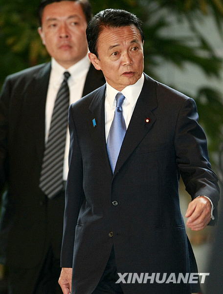 7月21日上午,在日本首都東京,日本首相麻生太郎步入首相官邸,參加眾議院解散之前的內閣會議。當天的內閣會議通過了于當天解散國會眾議院的決定。新華社記者 任正來 攝