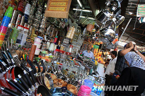 8月20日,在加沙城的一個(gè)市場(chǎng)里,店主出售廚具。新華社發(fā)(納賽爾攝)