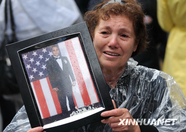 9月11日,在美國(guó)紐約世貿(mào)中心遺址附近, 一名婦女手持遇難親人的照片,參加“9·11”恐怖襲擊事件八周年紀(jì)念活動(dòng)。當(dāng)日,紐約舉行“9·11”恐怖襲擊事件八周年紀(jì)念活動(dòng),遇難者的親屬、友人紛紛來(lái)到世貿(mào)中心舊址緬懷故人。新華社記者谷欣容攝