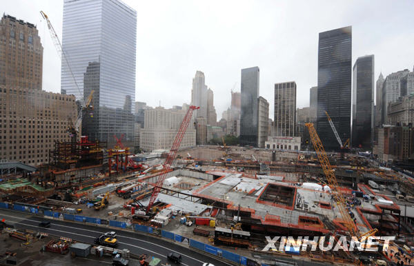 這是2009年9月11日拍攝的美國(guó)紐約世貿(mào)中心重建工程工地。當(dāng)日,紐約在世貿(mào)中心舊址附近舉行“9·11”恐怖襲擊事件八周年紀(jì)念活動(dòng),遇難者的親屬、友人紛紛來(lái)此緬懷故人。 新華社記者谷欣容攝