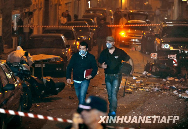 10月2日,警方在希臘雅典的爆炸現場調查。當日,一枚小型炸彈在有希臘總理卡拉曼利斯和大批支持者參加的競選集會上爆炸。當地警方官員說,爆炸造成財產損失但未傷人。新華社/法新