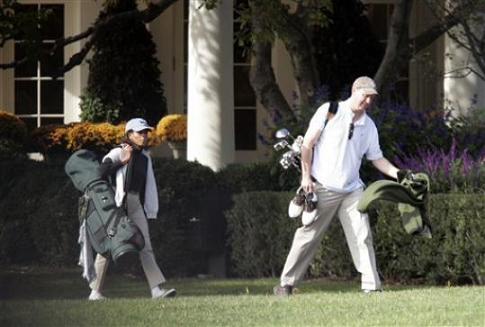 奧巴馬10月25日來到高爾夫球場一顯身手,在陪伴他的人中出現了一位女性的身影
