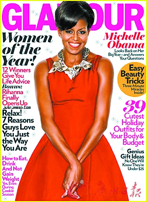 美國第一夫人米歇爾·奧巴馬以一身紅裙登上美國時(shí)尚雜志《Glamour》的封面,并且被評(píng)為“年度女性”。