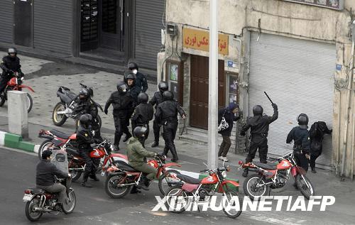 12月27日,在伊朗首都德黑蘭,安全人員包圍反對派支持者。據伊朗改革派一家網站27日報道,在今年6月總統選舉中失利的總統候選人、前總理穆薩維的侄子阿里·穆薩維當天在首都德黑蘭發生的警方與反對派支持者的沖突中身亡。到目前為止,伊朗政府沒有證實這一消息。新華社/法新