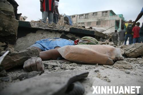這是1月12日在海地首都太子港街頭拍攝的受傷者。新華社發