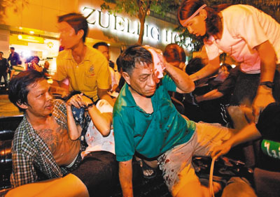 反政府示威持續(xù)個(gè)多月,引起國(guó)內(nèi)部分民眾不滿,數(shù)百名親政府、自稱沒(méi)有顏色的示威者,前晚在是隆路一帶與紅衫軍沖突,互相投擲啤酒瓶、石塊和爆竹等,其后由警方平息沖突。沖突造成最少20人受傷。