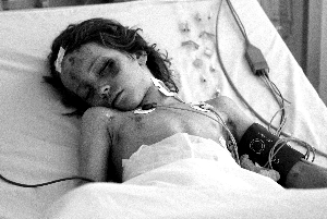 5月13日,利比亞,9歲的空難幸存者魯本躺在病床上。