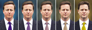 據(jù)英國(guó)媒體17日?qǐng)?bào)道,人們發(fā)現(xiàn),新當(dāng)選的英國(guó)首相卡梅倫和他的副首相克萊格實(shí)在太過相似,簡(jiǎn)直像雙胞胎。難怪英國(guó)選民們?cè)谕镀睍r(shí),越來越難以分清卡梅倫和克萊格了。有人將他們的照片合成了一個(gè)人物,還取了個(gè)新名字——“克萊格倫”。