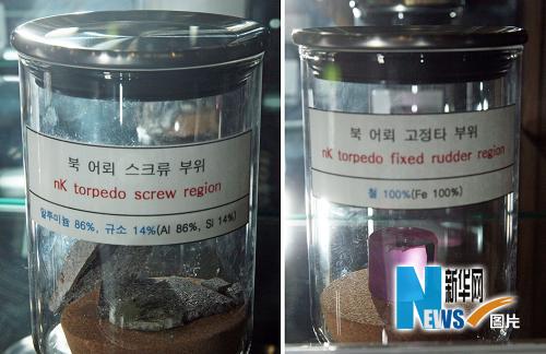 5月20日,在韓國首爾國防部會議室里展示著說明“天安”號沉沒原因的物件。當(dāng)日,韓國“天安”號軍民聯(lián)合調(diào)查團公布正式調(diào)查結(jié)果稱,綜合各種證據(jù)來看,韓國海軍的“天安”號警戒艦是遭受朝鮮小型潛水艇發(fā)射的魚雷攻擊而沉沒的。新華社/聯(lián)合通訊社