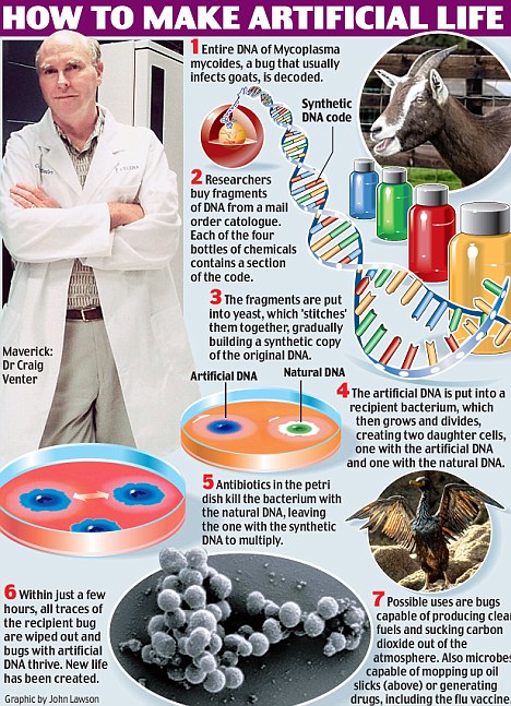 “這是第一個人造細胞,”領導研究的克雷格·文特爾說,“這是地球上第一個父母是電腦、卻可以進行自我復制的物種。”
