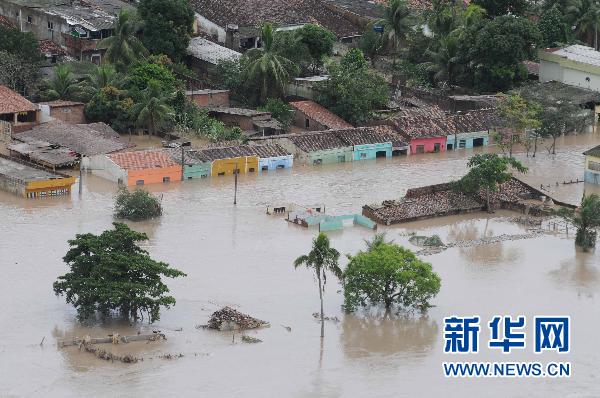 6月28日,巴西東北部伯南布哥州黑水市的房屋遭到水淹。
