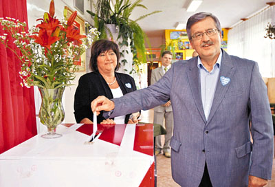 6月20日,波蘭舉行總統(tǒng)選舉首輪投票,共有10位候選人參加總統(tǒng)職位角逐。其中,科莫羅夫斯基的得票率為41.54%,卡欽斯基的得票率為36.46%。波蘭選舉法規(guī)定,首輪投票如果沒有候選人得票過半數(shù),得票數(shù)前兩名的候選人將在兩周后進入第二輪角逐。第二輪得票多者當選波蘭總統(tǒng)。