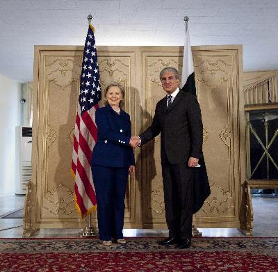 當(dāng)?shù)貢r(shí)間7月19日,美國國務(wù)卿希拉里與巴基斯坦外長庫雷西舉行會(huì)談。