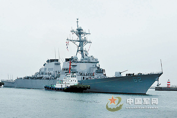 資料圖:參加軍演的“菲茨杰拉德”號(hào)導(dǎo)彈驅(qū)逐艦。
