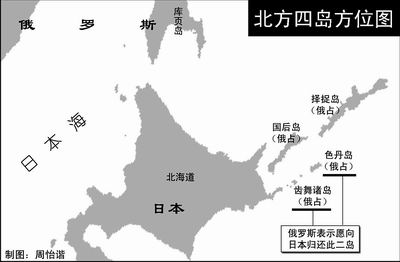 俄羅斯與日本之間長(zhǎng)期以來(lái)圍繞北方四島(俄羅斯稱南千島群島)問題一直存在爭(zhēng)端。北方四島指日本北海道以北的齒舞、色丹、國(guó)后和擇捉四島。二戰(zhàn)結(jié)束以后,這些島嶼先在蘇聯(lián)、后在俄羅斯聯(lián)邦的管轄之下。長(zhǎng)期以來(lái),日俄在四島歸屬問題上互不讓步。日本政府堅(jiān)持解決北方四島歸屬問題是締結(jié)日俄和平條約的前提條件。(記者魏良磊)