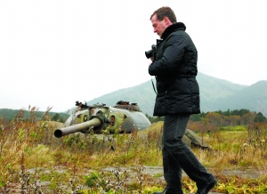 11月1日,俄總統梅德韋杰夫登上與日本存在爭議的南千島群島(日本稱北方四島)南端的國后島視察。這是俄羅斯和蘇聯歷史上首位前往南千島群島視察的國家元首。日本首相菅直人立即表示俄總統此行“非常令人遺憾”。俄羅斯外交部回應稱,梅德韋杰夫“獨立確定在本國境內出行的路線”。