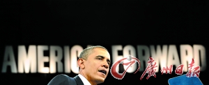 奧巴馬在投票前還在拉票,他身后的標語是“推動美國向前進”。