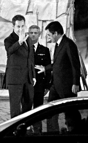 13日,法國總統(tǒng)薩科齊在愛麗舍宮外與菲永短暫“告別”。