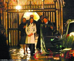 當地時間17日深夜,剛剛宣布訂婚消息的米德爾頓在保安的陪同下出現在威斯敏斯特教堂。