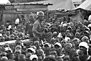 12月18日,阿比讓,科特迪瓦政府軍在爭(zhēng)議總統(tǒng)洛朗·巴博支持者集會(huì)上守衛(wèi)。當(dāng)日,巴博通過國家電視臺(tái)發(fā)布公告要求聯(lián)合國駐科行動(dòng)團(tuán)和法國軍隊(duì)撤出國境。聯(lián)合國方面當(dāng)天召開緊急會(huì)議,商議如何作出回應(yīng)。當(dāng)天早些時(shí)候,聯(lián)合國駐科特迪瓦維和部隊(duì)一處營地遭6名蒙面男子武裝襲擊,尚無人員傷亡報(bào)告。