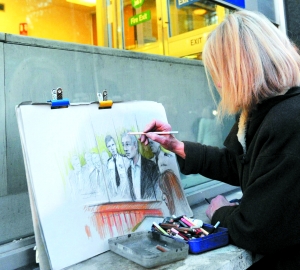 12月7日,倫敦,法院的藝術家在描繪阿桑奇受審的畫面。由于不能拍照,一些報道采用繪畫展現法庭現場。