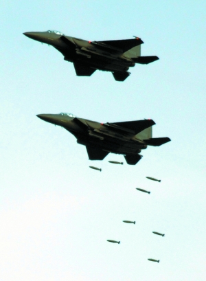 23日,參加演習(xí)的韓國戰(zhàn)機在投彈。新華社發(fā)
