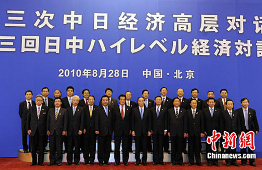 8月28日,第三次中日經(jīng)濟(jì)高層對(duì)話在北京人民大會(huì)堂舉行。中國(guó)國(guó)務(wù)院副總理王岐山、日本外相岡田克也等出席。中新社記者 劉震 攝