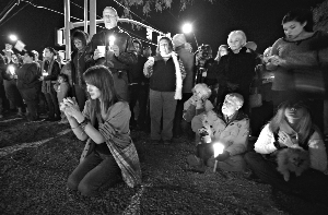 1月9日,亞利桑那州圖森市市民在女議員吉福茲位于當地的辦公室外點燃蠟燭,為其祈禱。
