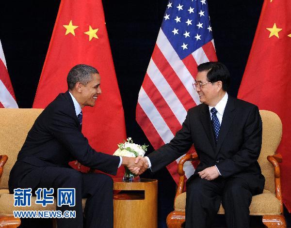 資料圖片:2010年11月11日,中國國家主席胡錦濤在韓國首都首爾同美國總統(tǒng)奧巴馬舉行會晤。新華社記者劉建生攝
